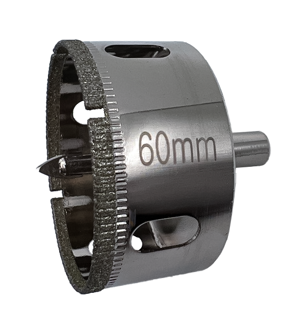 Корпус коронки выполнен из высокопрочной стали, а сплошная режущая кромка — из синтетических алмазов на специальной связке, обеспечивающей чистый рез без сколов по глазури.