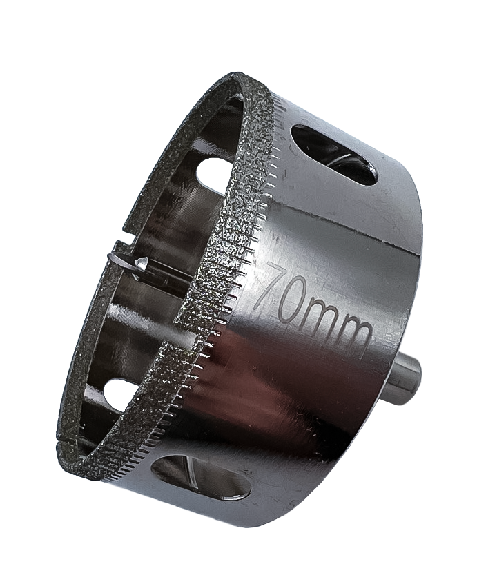 Корпус коронки выполнен из высокопрочной стали, а сплошная режущая кромка — из синтетических алмазов на специальной связке, обеспечивающей чистый рез без сколов по глазури.