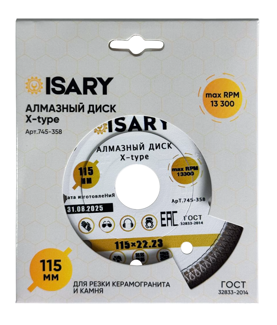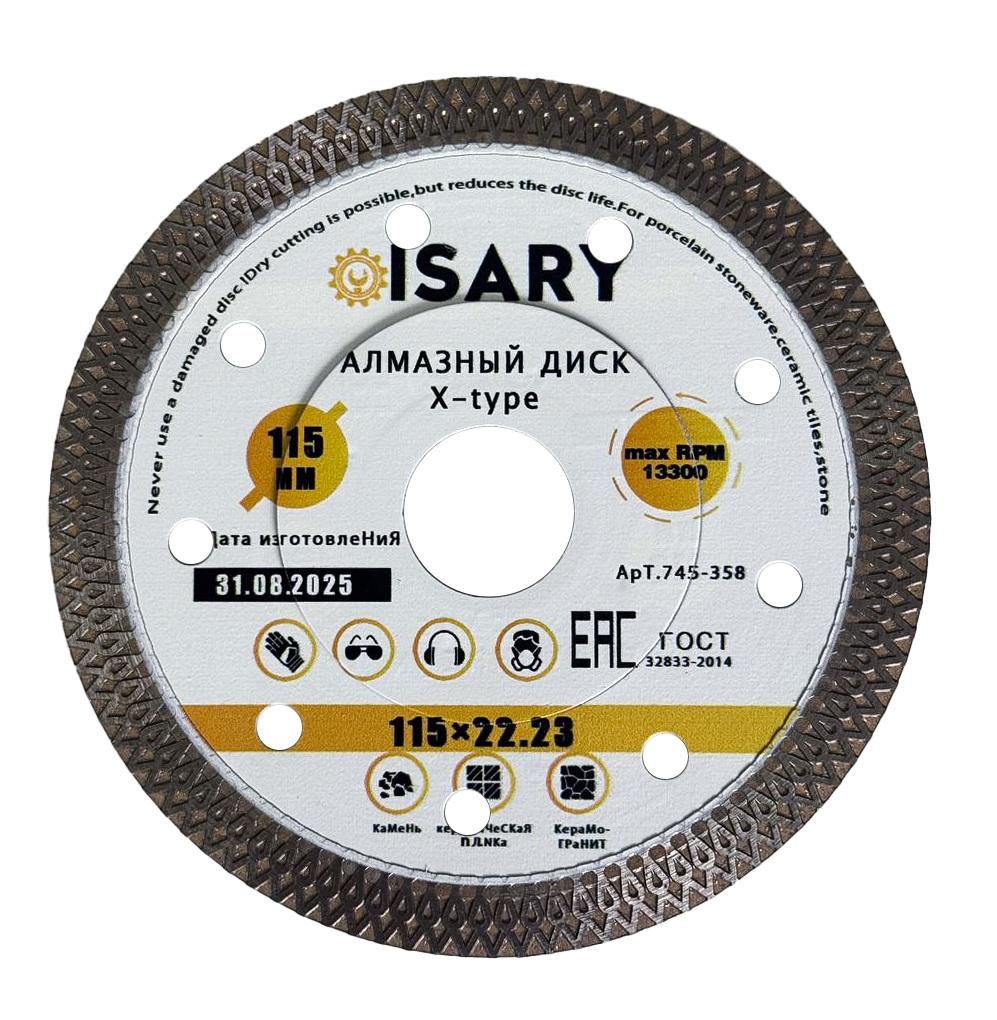 Превосходное решение для резки керамогранита, керамической плитки и декоративного камня – алмазный диск Isary X-Type. Этот диск сочетает в себе высокое качество, аккуратный рез и надежность, что делает его незаменимым инструментом для профессиональной облицовки и точных отделочных работ.